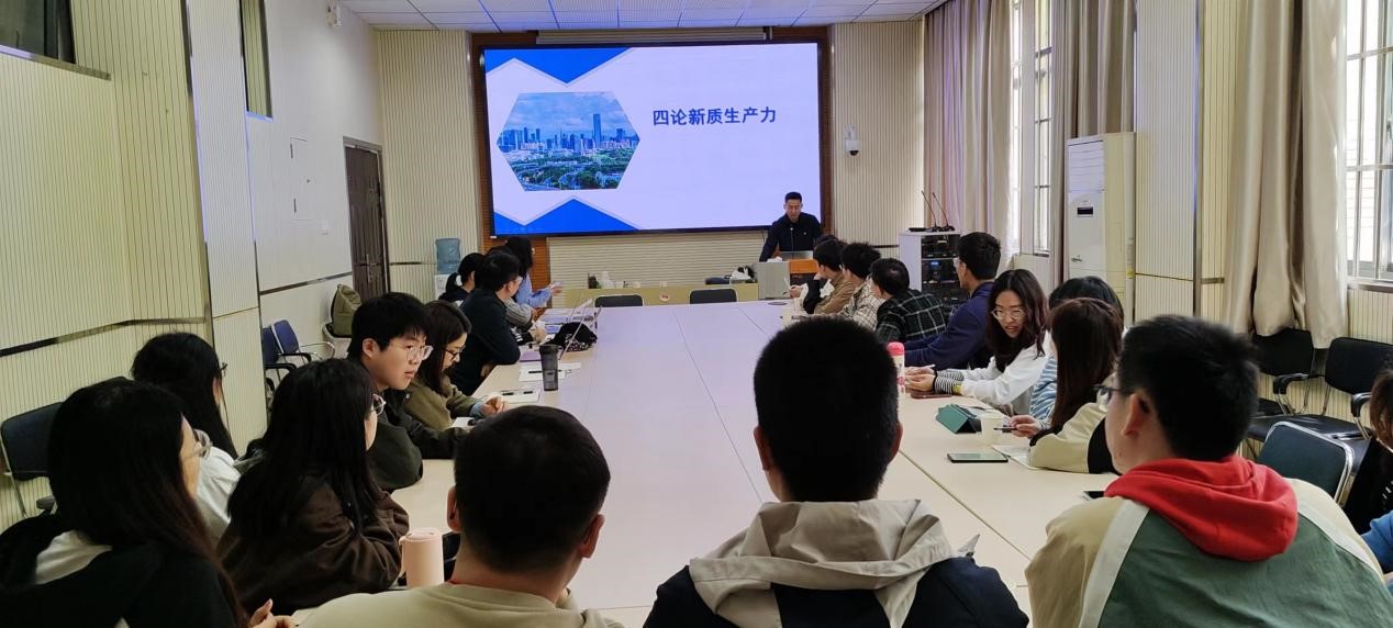 随后,2023级博士生徐志源同学为大家做了“四论新质生产力”的专题领学报告。徐志源同学结合自身专业方向和研究心得,从新质生产力的本质论、价值论、生成论、误区论等四个方面深入解读了何为新质生产力、为什么要发展生产力、新质生产力如何形成、如何在实践中更好地发展新质生产力,怎样避免对新质生产力的理解误区,为同学们进行了深刻的理论解析和学理阐释。