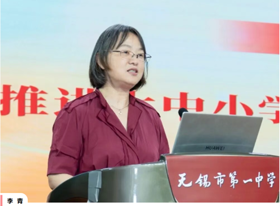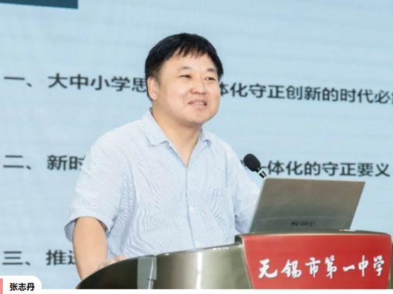 与高校专家的分享相呼应,上午的报告环节,还邀请到江苏省无锡市滨湖区教育工委副书记张家凤、江苏省无锡市第一中学党委书记朱晴怡分别从区域和公司角度分享推进大中小学思政课一体化改革创新的实践经验。其中,无锡市滨湖区针对思政一体化发展资源“散”、课程“断”、协同“松”的难题,紧扣湖湾自然人文资源,将之转化为思政教育的鲜活素材,让思政教育扎根本土;紧扣学段认知规律,解决学段断层问题,让思政教育循序渐进;紧扣家校社协同需求,推动三方从“单次合作”转向“深度协同”,形成全域育人合力,让思政教育凝聚共识。无锡市第一中学从“如何落实立德树人?”这一根本问题的追问出发,让思政金课提质再创新,实现从“有意义”到“有意思”;让思政教育扎根学科中,实现从“思政课”到“全学科”;让思政教育渗透在生活中,实现从“校园内”到“全社会”,构建起纵向上以“小学—初中—高中—大学”为育人链条,横向上以“思政课程+课程思政+生活思政”为核心的育人矩阵。