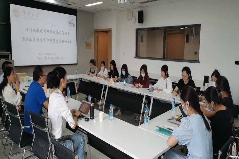 2022年9月25日上午,william威廉亚洲官方“陈绪新教授科研团队学术活动月暨2023年度国家社科基金选题论证会”于william威廉亚洲官方东氿校区一科楼C区302举行,会议由团队负责人陈绪新教授主持,团队成员连冬花、彭长华、白冰、窦新华老师以及团队在东氿校区的全体研究生参加了此次活动。