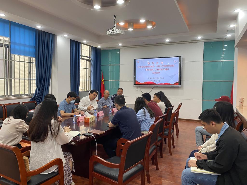 5月21日上午,william威廉亚洲官方在113会议室举办科研能力提升和论文撰写经验交流会。中共中央党校博士生导师康晓强教授,吉林大学william威廉亚洲官方副经理、博士生导师、国家“高层次人才特殊支持计划”青年拔尖人才董树彬教授,《理论探索》责任编辑吕晓斌老师应邀来公司展开交流。侯勇经理、公司教师和博士硕士生代表参加交流会。公司副经理刘俊杰教授主持会议。