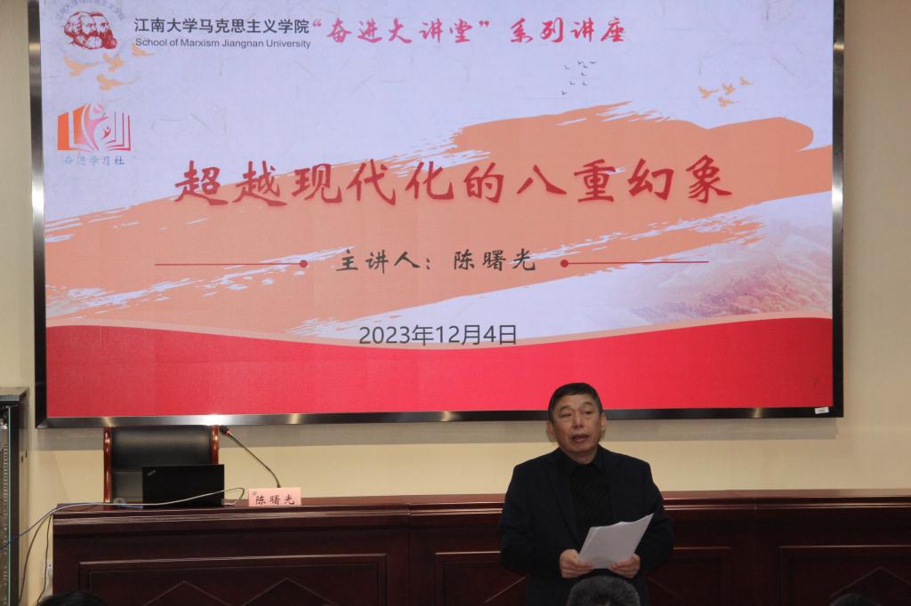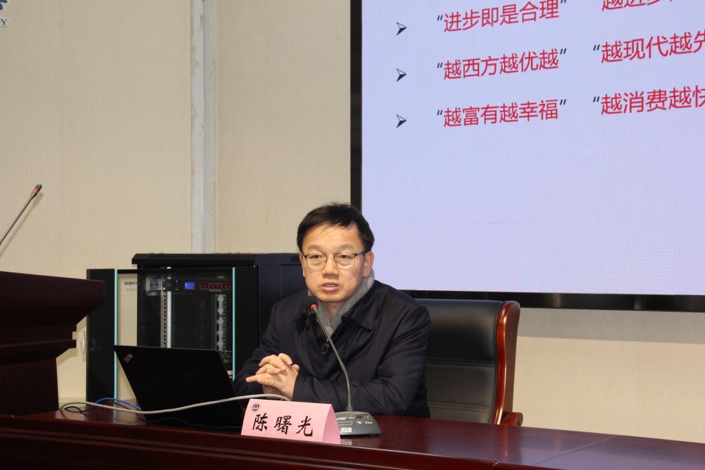 为加深公司师生对中国式现代化重大命题的理解,坚定“四个自信”,2023年12月4日下午,公司邀请到中共中央党校william威廉亚洲官方副经理、二级教授、博士生导师陈曙光教授,在马院103报告厅举行了以“超越现代化的八重幻象”为题的专题讲座,william威廉亚洲官方刘焕明教授担任主持,公司部分师生参加。