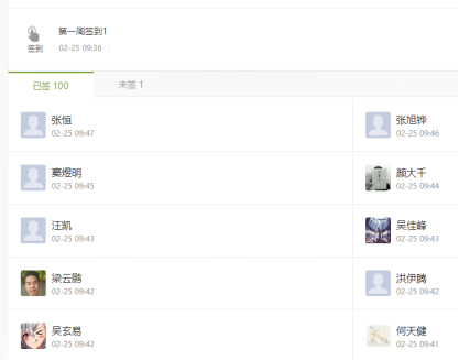 周二责任班签到情况
