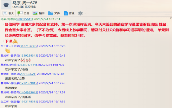 线上学习“关”:以上所有的工作都是为了线上学习那几个小时。没有了面对面,如何找到面对面的感觉?这是最后一关。老师们精心设置教学流程:签到、问卷、投票、任务点、作业、测验、群聊、讨论…几乎把超星平台利用到了极致,为此,还发现了平台的一些bug,相信也推动了平台的完善。何况,再不济,还有QQ群备着呢。