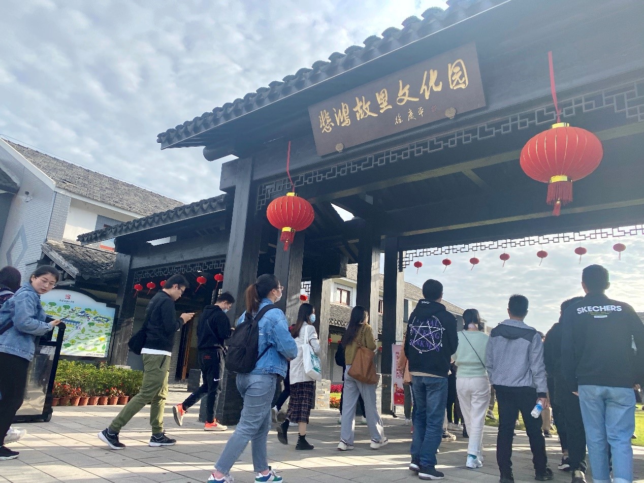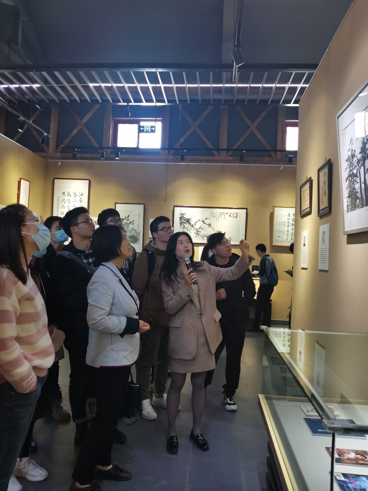 经过约一个半小时的车程,我们到达了被称为画坛“金陵三杰”徐悲鸿先生的故居——悲鸿故里文化园。文化园有导游带我们参观,跟随导游的步伐,我们先后参观了徐悲鸿大师展厅、徐悲鸿大师家人及弟子展厅、社会公众展厅、青少年培训中心、大师工作室、游客中心等六个部分,主要了解了徐悲鸿大师生平事迹和大师及其家人、弟子的各类创作。