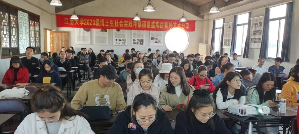 下午,我们前往实践活动的最后一站——葛盛陶庄。陶艺在宜兴有着源远流长的历史。在葛盛陶庄,同学们首先聆听了一个紫砂艺术的分享会,葛董事长在分享会上与同学们积极互动;在参观陶庄的紫砂艺术展览中心时,大师还与老师和同学们分享了“茶道”,大家纷纷表示受益匪浅。