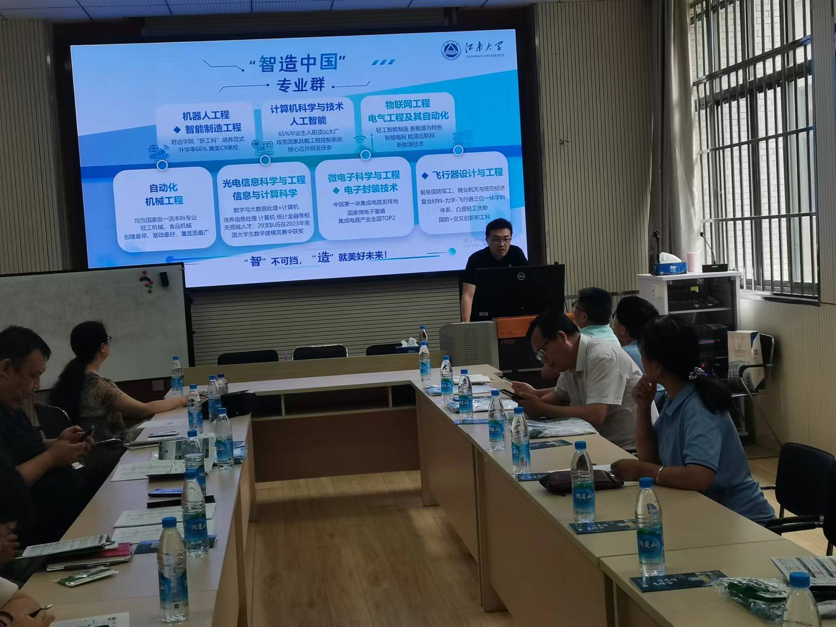 会上,李志超老师从公司概况、招生政策、就业形势、学科特色、校园环境等多方面为大家进行了宣讲。大家从高考政策、志愿填报技巧等多方面积极讨论,分享经验,努力当好招生宣传工作“代言人”,讲好江南故事。