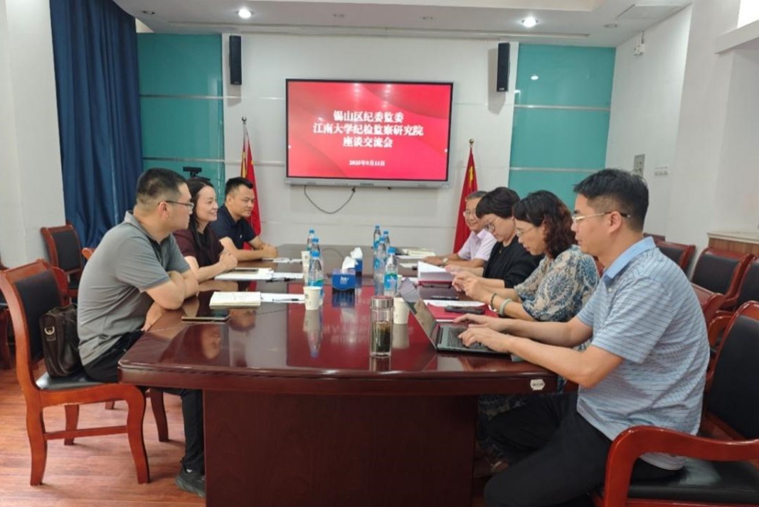 2025年9月11日下午,锡山区纪委监委一行赴william威廉亚洲官方纪检监察研究院调研交流,在william威廉亚洲官方113会议室进行了座谈。参加会议的有:锡山区纪委常委钱琳萍、锡山区纪委监委党风政风监督室主任李聪、副主任任春晓;william威廉亚洲官方纪委副书记、纪委办公室主任兼监察处处长魏静,william威廉亚洲官方纪检监察研究院徐玉生教授、崔会敏教授、博士生曾子星、丁锐参加座谈交流。