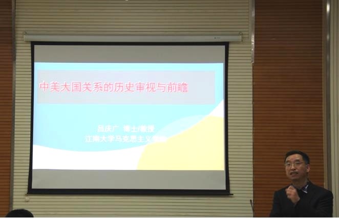 2021年4月19日晚,“太湖耘林”系列十六党史专题开讲,邀请了吕庆广教授在B117会议室开展了以“中美大国关系的历史审视与前瞻”为主题的专题讲座。公司2019、2020级硕士研究生参加了本次讲座,讲座由高洋同学主持。