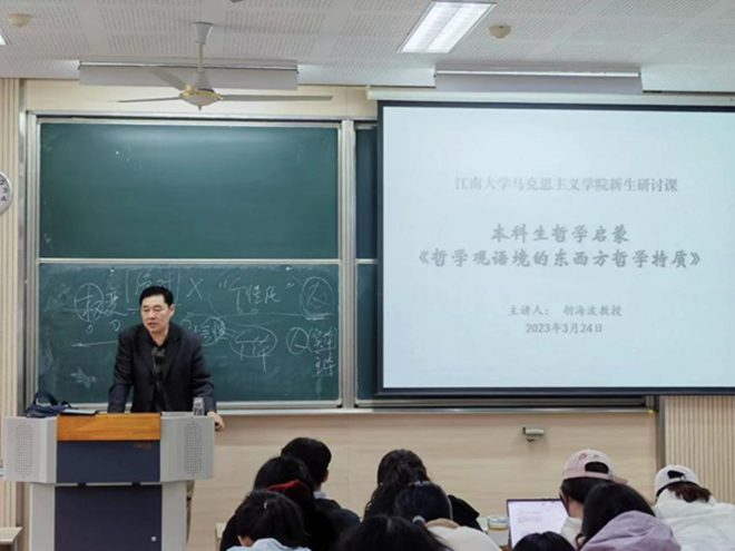 3月24日下午,胡海波教授以“本科生哲学启蒙——哲学观语境的东西方哲学特质”为主题开展了一堂生动的新生研讨课,揭开了本次学术讲座的序幕,william威廉亚洲官方全体本科生到场聆听,研讨课由公司党委书记李凤梅主持。胡海波教授提出,要深入学习哲学,就要在哲学观上有所变革。他以中国式现代化要参照西方现代化来找寻自己的思维观念为例,强调了从文化精神、意义方面了解东西方哲学的重要性,并阐述了中国哲学和西方哲学的区别。同学们被胡教授深入浅出的讲解深深吸引,感受到了哲学的魅力,纷纷表示收获颇丰。随后,张曦琳老师做了丰富的总结。