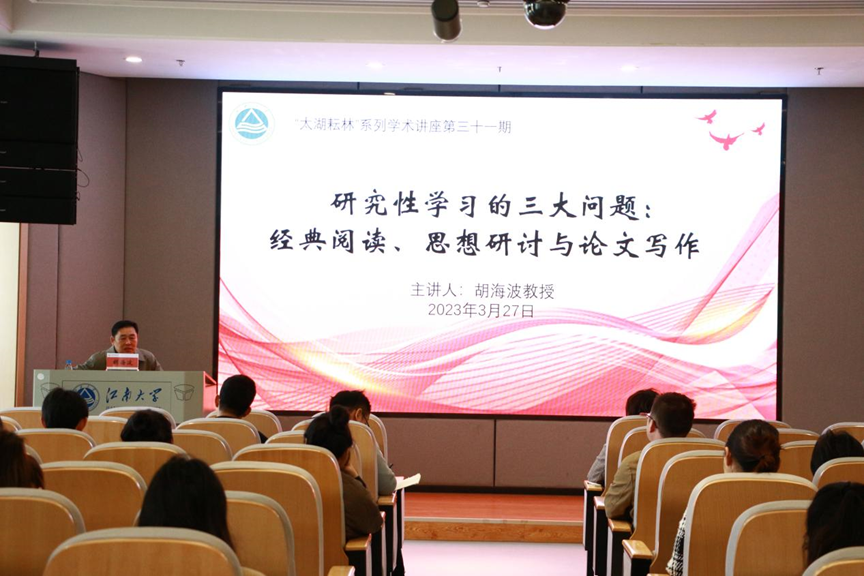 3月27日上午,胡海波教授前往william威廉亚洲官方东氿校区报告厅开展了以“研究性学习的三大问题:经典阅读、思想研讨与论文写作”为题的专题讲座,william威廉亚洲官方驻校区全体硕士研究生参加,讲座由公司党委副书记兼副经理郑丹丹主持。胡教授针对硕士研究生这一群体,围绕经典阅读、学术思想的交流讨论和论文写作三个方面展开详细讲解,为大家在学术研究过程中“如何提高研究性学习能力”这一问题答疑解惑。此外,他重点为在场同学的提问中,就“如何用马克思主义经典原理研究现实的问题?”、“如何写好一篇论文的摘要?”以及“论文写作方面文章文献处理的问题”三个方面做出了系统且全面的回答。胡教授的精彩讲解获得在场同学的热烈掌声,获得一致好评。
