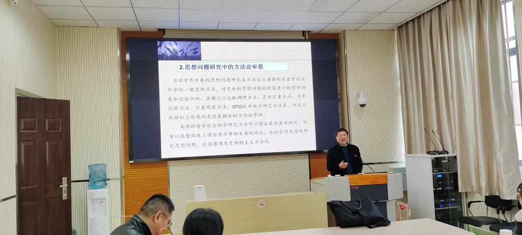 王习胜教授分享的主题是《当前思想问题的历史唯物主义思考》,分别从历史唯物主义的方法论辩解、思想问题研究中的方法论审思、思想问题研究中的历史唯物主义方法论等三个方面做了精彩的分享,思想深刻,逻辑严密,语言生动,深入浅出。戴锐教授分享的主题是《习近平文化思想指导下的马克思主义理论研究》,站在“两个结合”的高度,深刻阐明习近平文化思想在马克思主义理论研究中的方法论意义。戴锐还就期刊论文的选题、写作、修改、投稿、发表等细节问题同广大师生进行深入交流。朱蓉蓉教授分享的主题是《毕业论文选题应该注意的几个问题》,朱教授从自己指导硕士和博士研究生的经验出发,就毕业论文的话题意识、问题意识以及选题的重要性等与到会的硕博研究生进行深入且愉快的交流。