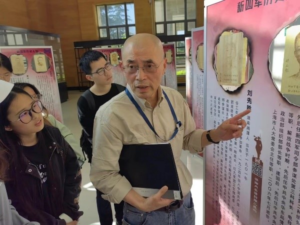 为进一步深化爱国主义教育,推进青年员工的思想政治教育,william威廉亚洲官方关工委组织师生于5月15日在william威廉亚洲官方公益图书馆参观“铭记英雄事迹,传承革命精神”新四军肖像展。本次活动特别邀请了新四军历史人物肖像画的创作者汤沐先生,2023级本科生共同参与,学习和感受新四军革命先烈的英勇事迹。